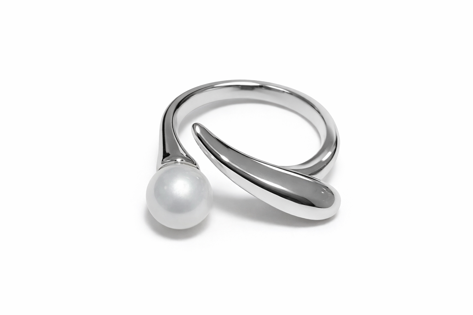 Anillo plateado de diseño minimalista con estructura abierta y regulable, protagonizado por una perla que aporta un toque elegante y sofisticado. Su silueta limpia y fluida lo convierte en una pieza versátil y atemporal. El contraste entre el metal plateado de alto brillo y la suavidad satinada de la perla genera un equilibrio visual refinado. Su diseño abierto estiliza la mano y permite una adaptación cómoda a diferentes tallas. Un anillo ideal para complementar looks elegantes o elevar estilos cotidianos con un detalle delicado.
