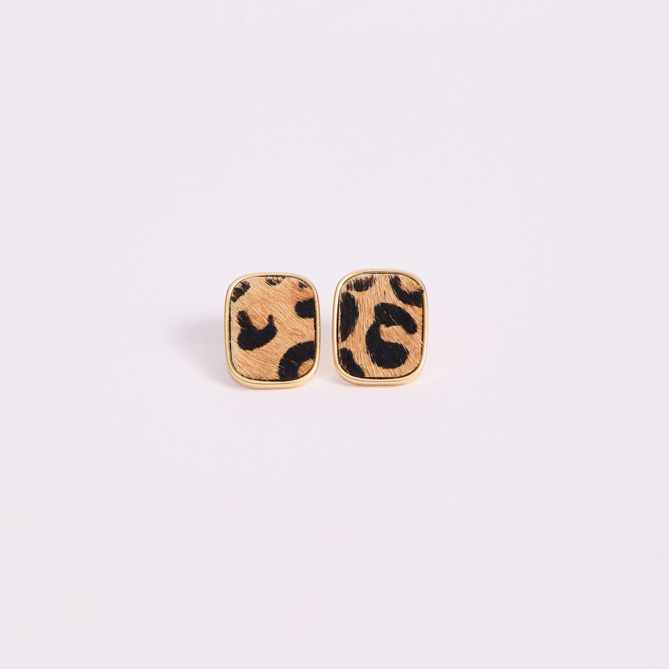 Aretes de forma oval con textura animal print y base dorada, balance ideal entre elegancia y tendencia.