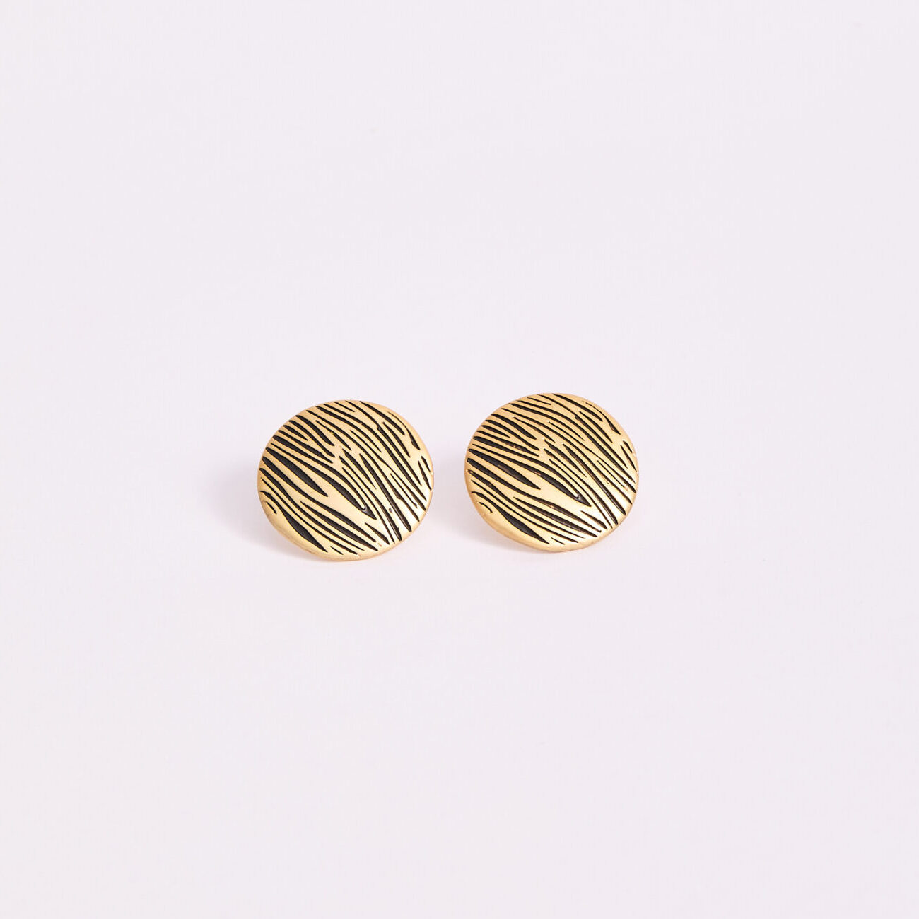 Diseño circular con grabado lineal que aporta profundidad visual y un acabado contemporáneo.