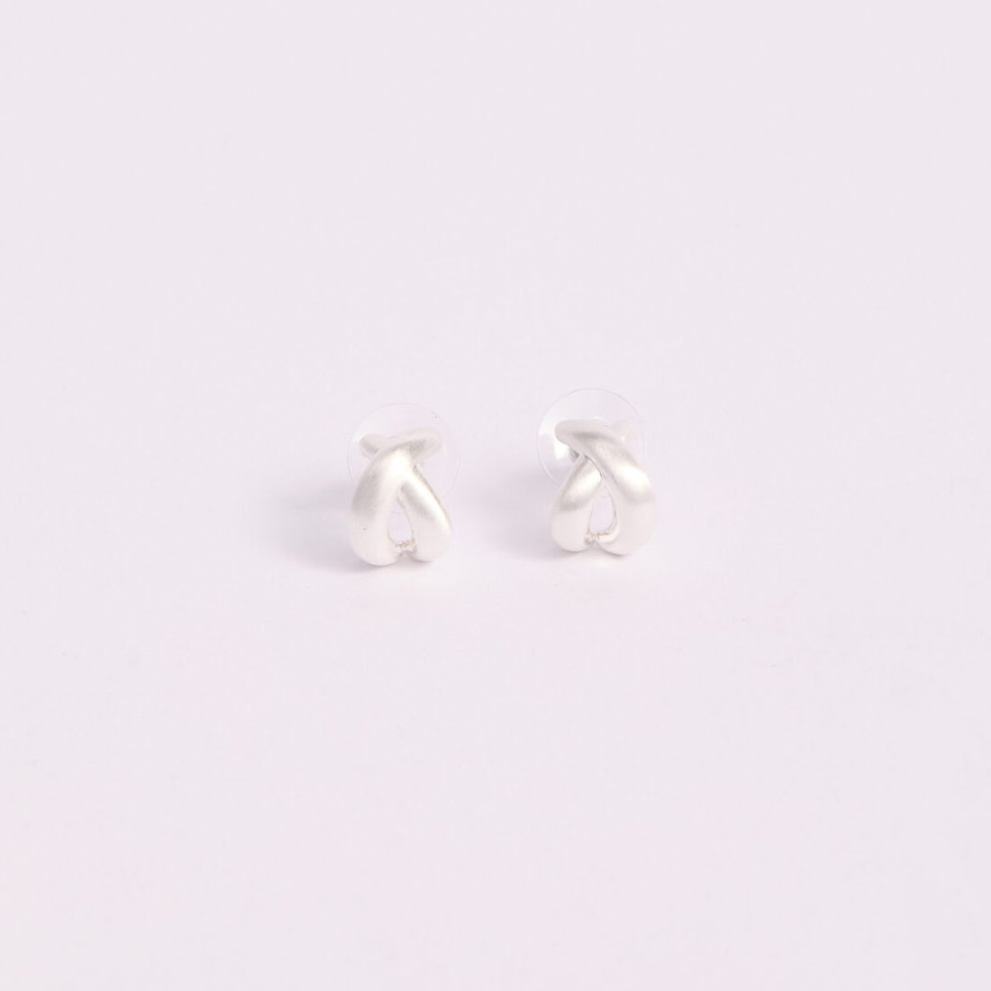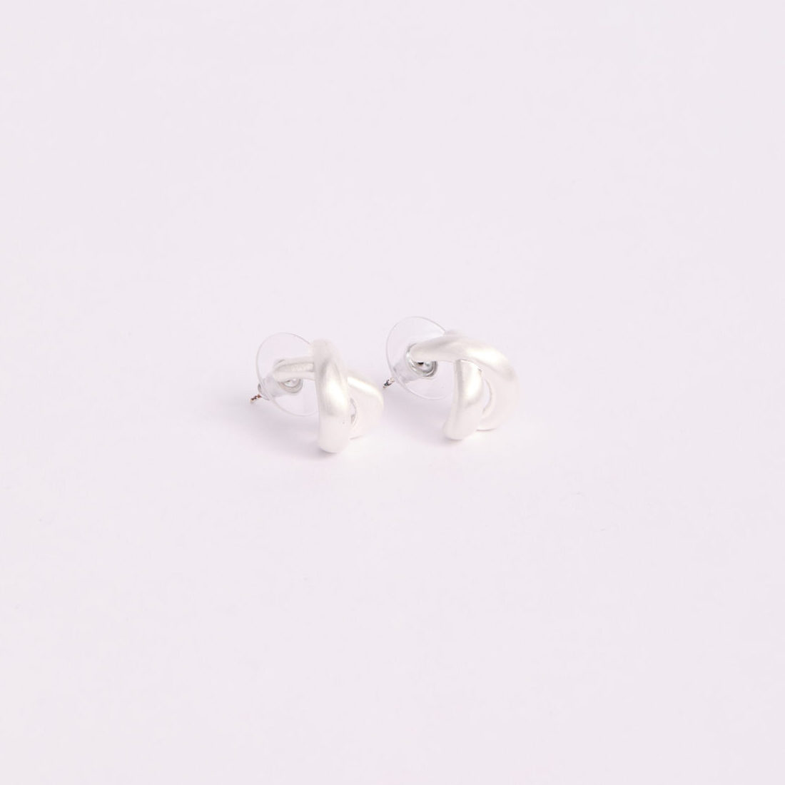Aretes de diseño contemporáneo con formas entrelazadas y volumen escultórico, elaborados en tono blanco opaco con acabado satinado. Su estética tipo “nudo” aporta un look moderno y sofisticado, ideal para quienes buscan accesorios con presencia, pero de líneas limpias y elegantes.