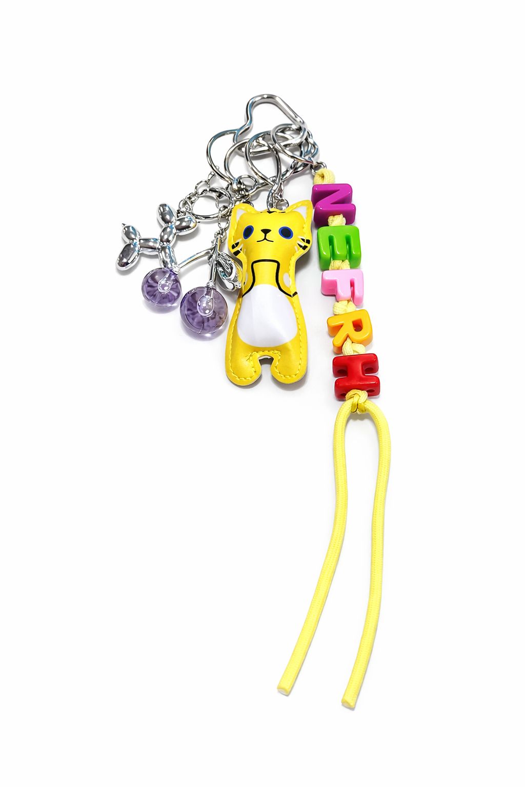 Bag charm decorativo con diseño divertido compuesto por un dije de gato amarillo acompañado de letras multicolor que forman la palabra “NEFRAH”. El accesorio incluye además pequeños dijes decorativos y cuentas colgantes que aportan movimiento y un estilo alegre. Su combinación de colores vibrantes y elementos colgantes crea un accesorio llamativo y juvenil, ideal para personalizar bolsos, mochilas o llaveros. Este diseño añade un toque original y lleno de personalidad a cualquier accesorio. Un bag charm perfecto para quienes buscan un complemento creativo y distintivo.