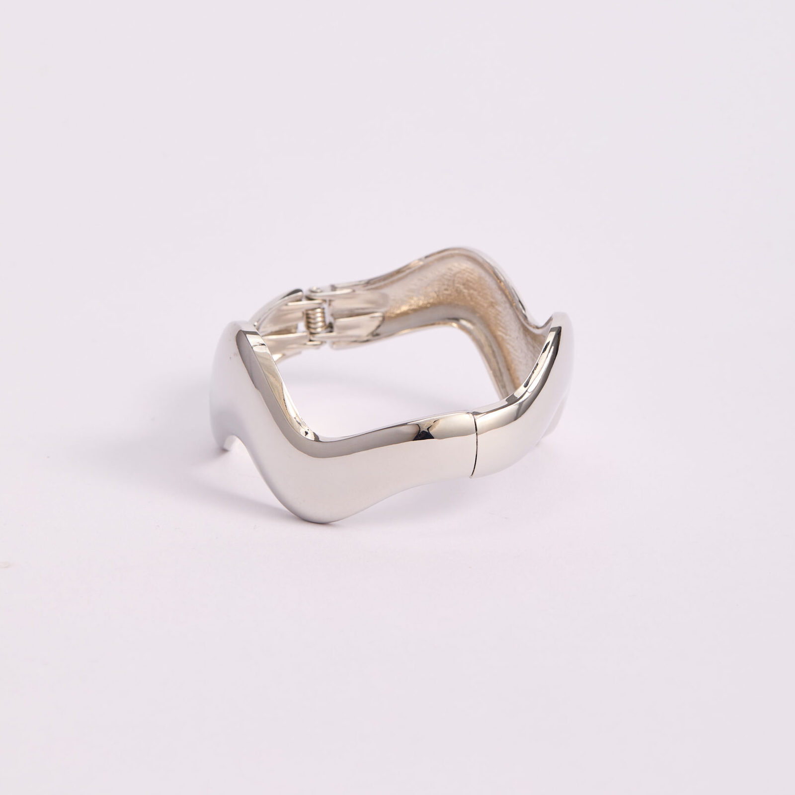Brazalete Escultural Ondulado Plata Espejo