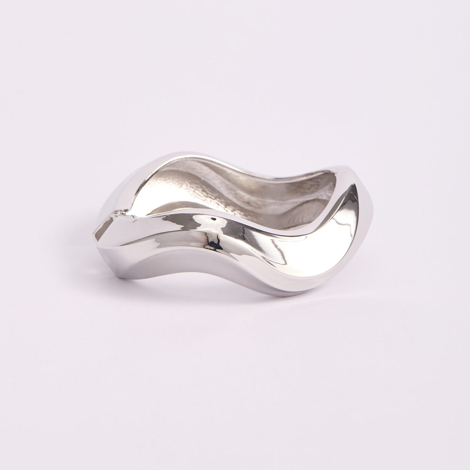 Este brazalete está diseñado como pieza statement, ideal para usar sola y permitir que destaque por sí misma. Su estructura rígida brinda firmeza y estabilidad en la muñeca, mientras que la bisagra con resorte facilita colocarla y retirarla con comodidad.
