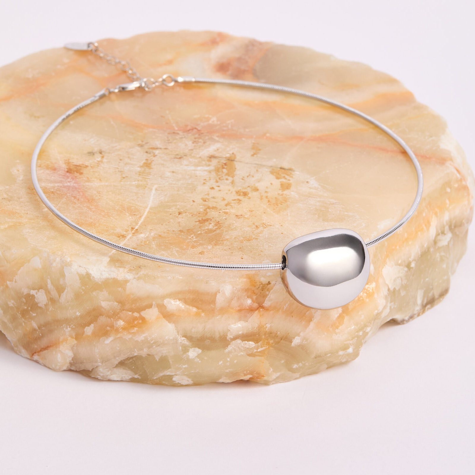 Collar Minimalista Plateado con Dije Orgánico Pulido