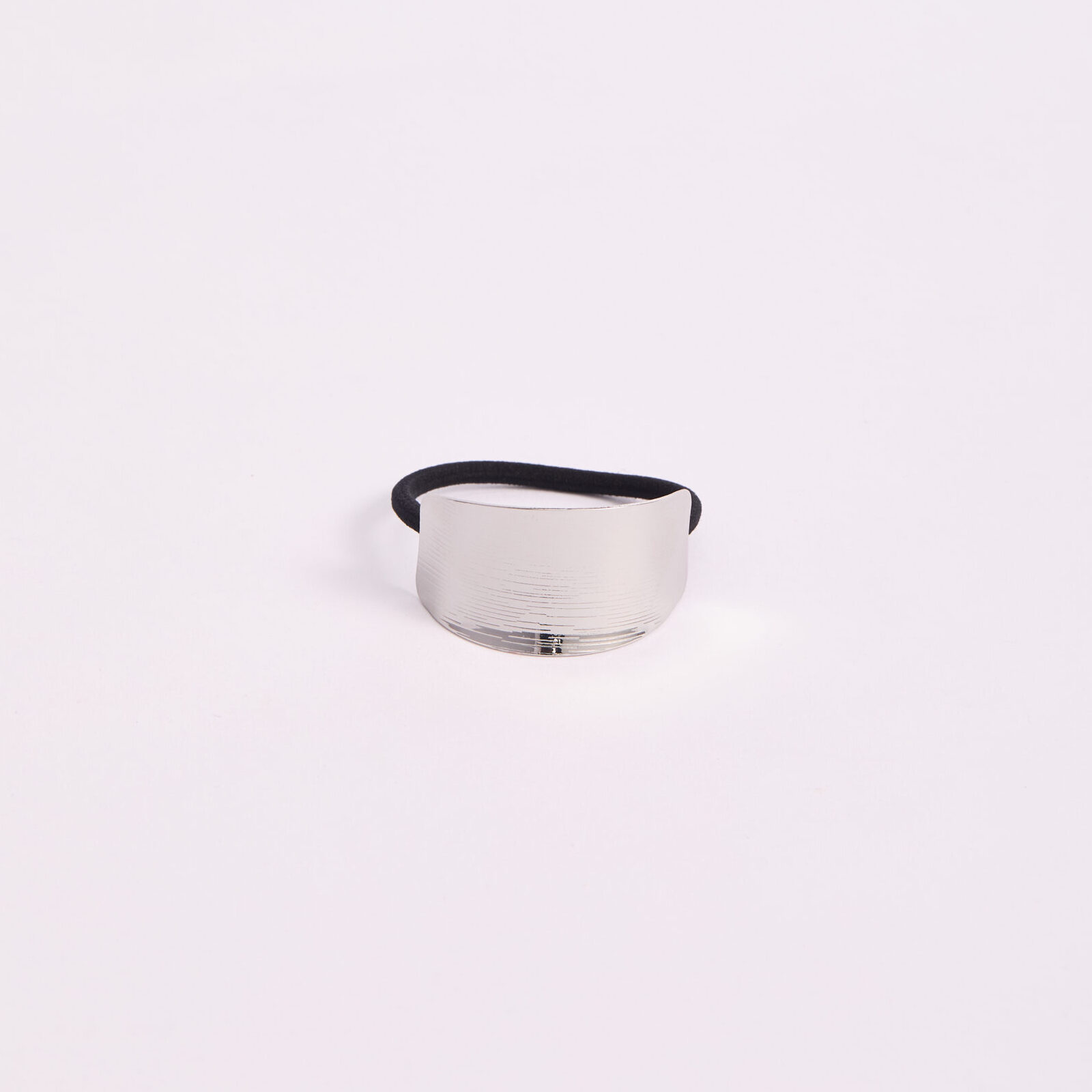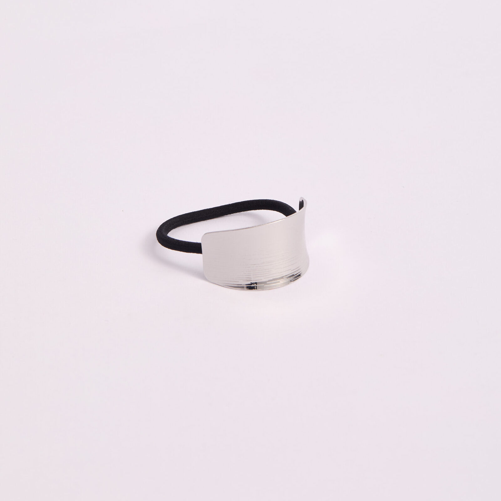 Collet para cabello con placa metálica plateada de gran formato y diseño curvo envolvente. Su silueta amplia y limpia crea un accesorio moderno y elegante que aporta presencia al peinado.