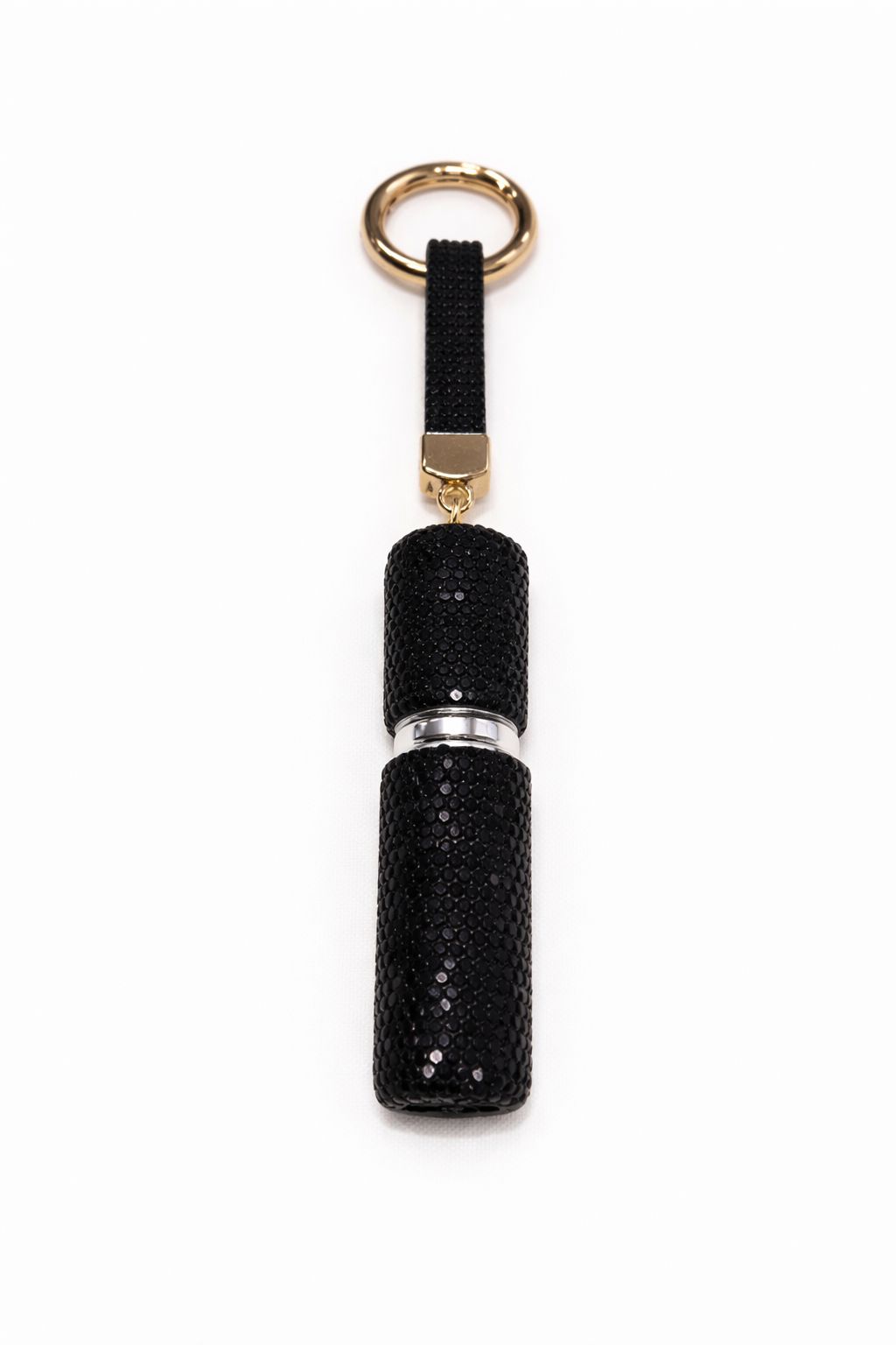 Llavero porta perfume con diseño elegante y acabado completamente cristalizado en tono negro. Este accesorio combina funcionalidad y sofisticación, permitiendo llevar fragancias de forma práctica mientras aporta un estilo moderno y discreto al bolso o llavero. Su superficie está recubierta con microcristales en tono negro que generan un brillo sutil, logrando una estética más sobria y refinada en comparación con los modelos de colores vibrantes. Su formato compacto tipo frasco portátil es ideal para transportar pequeñas cantidades de perfume y realizar retoques durante el día. Un accesorio versátil que destaca por su apariencia elegante y su funcionalidad en el uso diario.